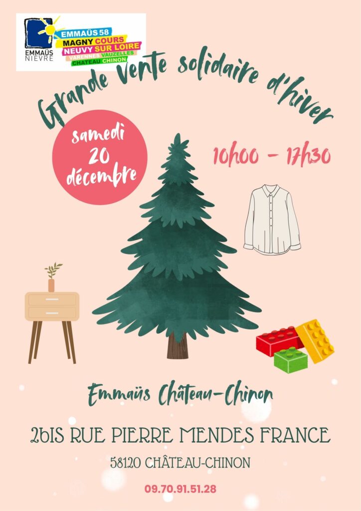 Cette année les compagnons de la boutique vous accueillerons pour une vente solidaire exceptionnelle le samedi 20 décembre de 10h00 à 17h30